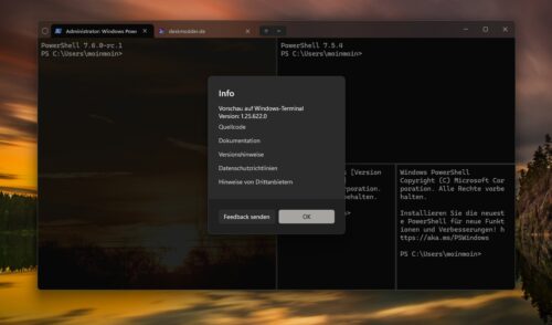 Das Windows Terminal macht mal wieder einen Sprung mit den Versionsnummern. Die Preview ist jetzt die 1.25 (1.25.622.0) und die Stable wechselt von der 1.23 auf die 1.24 (1.24.10621.0). Die Preview enthĂ€lt die neue Suche in den Einstellungen, worĂŒber wir…